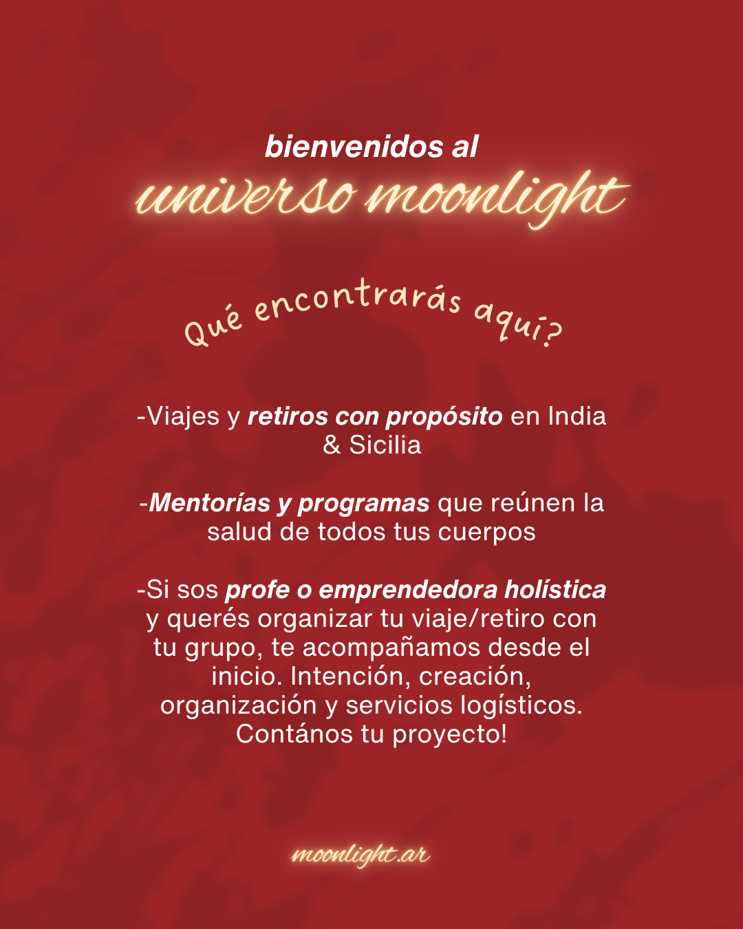 Si ya estuviste siguiendo las propuestas del universo moonlight hasta aquí, sabrás que lo más importante es conocer la intención del viaje, para que puedas elegir eso que resuena con tu corazón.